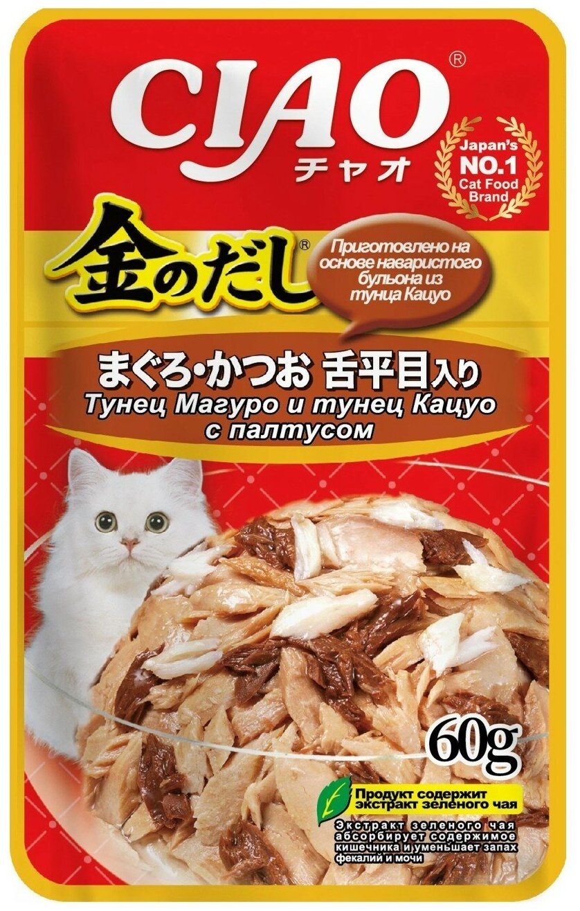 Влажный корм для кошек Inaba Kinnodashi Тунец Магуро и тунец Кацуо с палтусом 6 уп х 60г