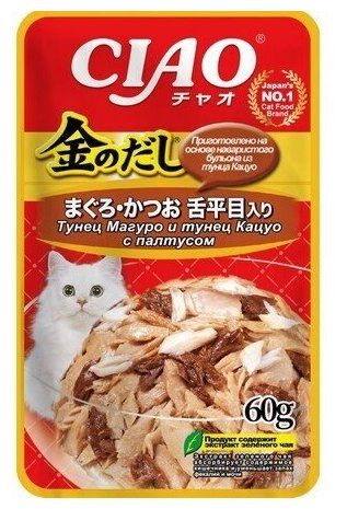 Купить Влажный корм для кошек Inaba Kinnodashi Тунец Магуро и тунец Кацуо с палтусом 60г