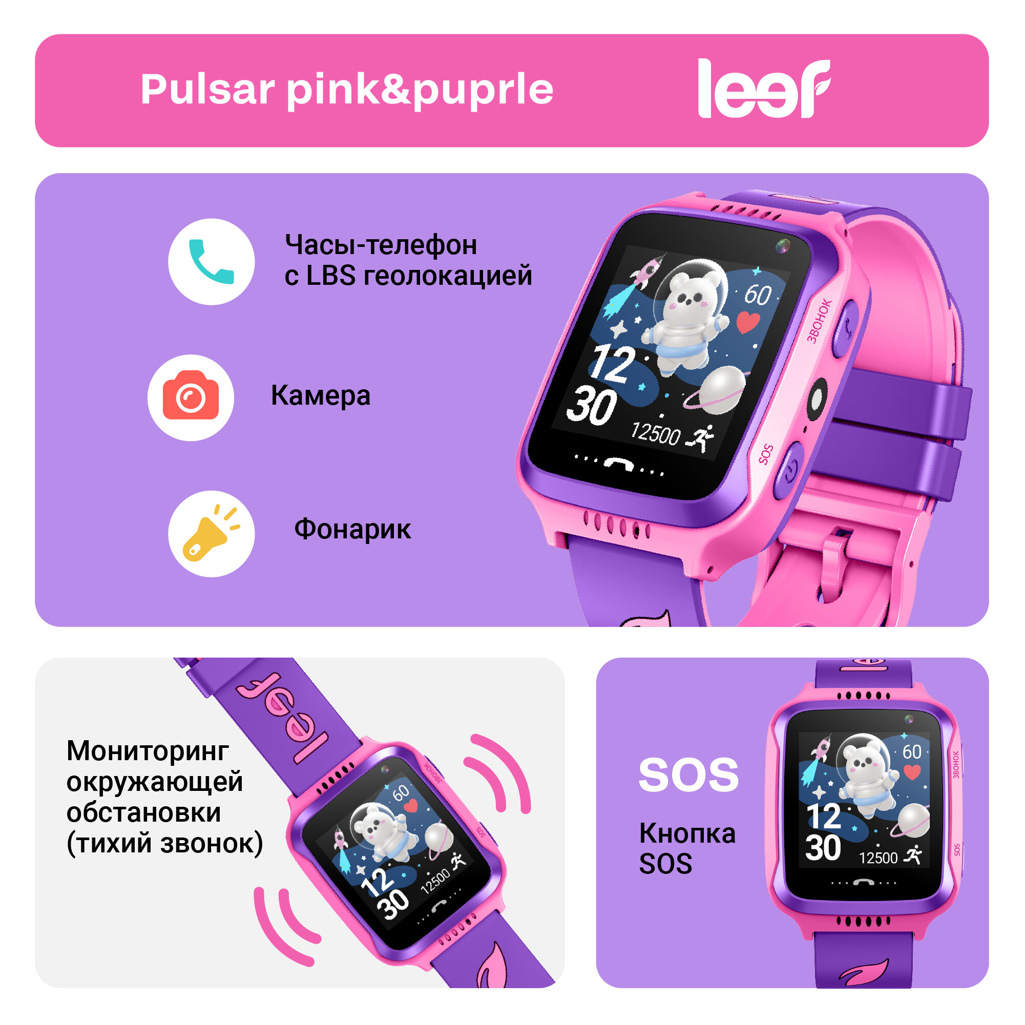 Детские умные часы LEEF Pulsar, цвет розовый+фиолетовый интересное: