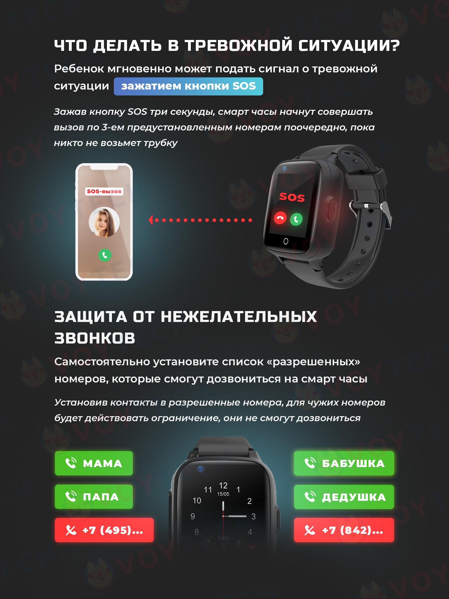 Смарт часы детские KT15 4G LTE школьнику, умные часы с GPS и сим картой, смарт-часы с видеозвонком и телефоном для мальчика в школу, черный