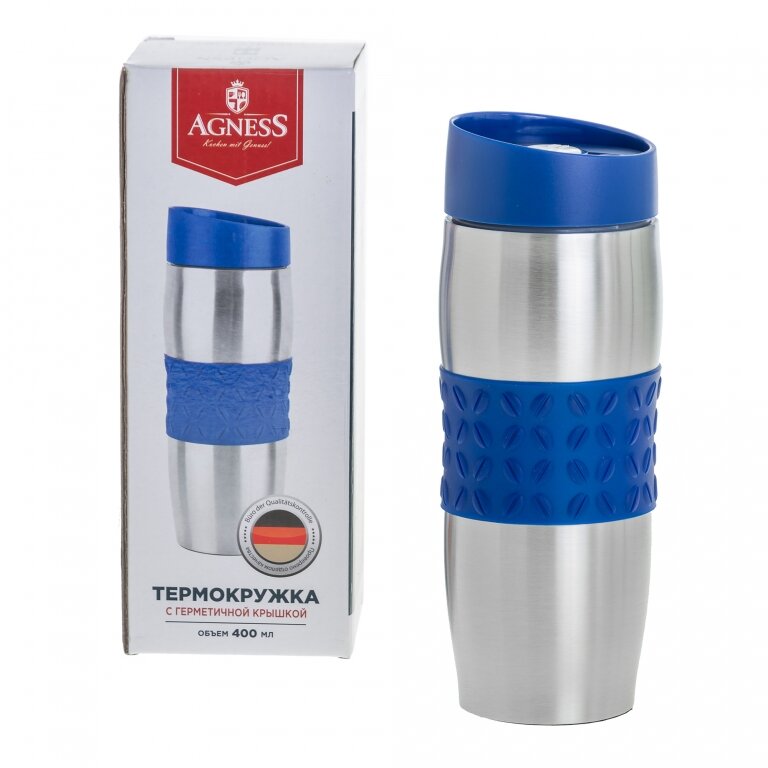 Термокружка Agness 400 Мл. С Силиконовой Вставкой И Кнопкой-Стоппером 709-053