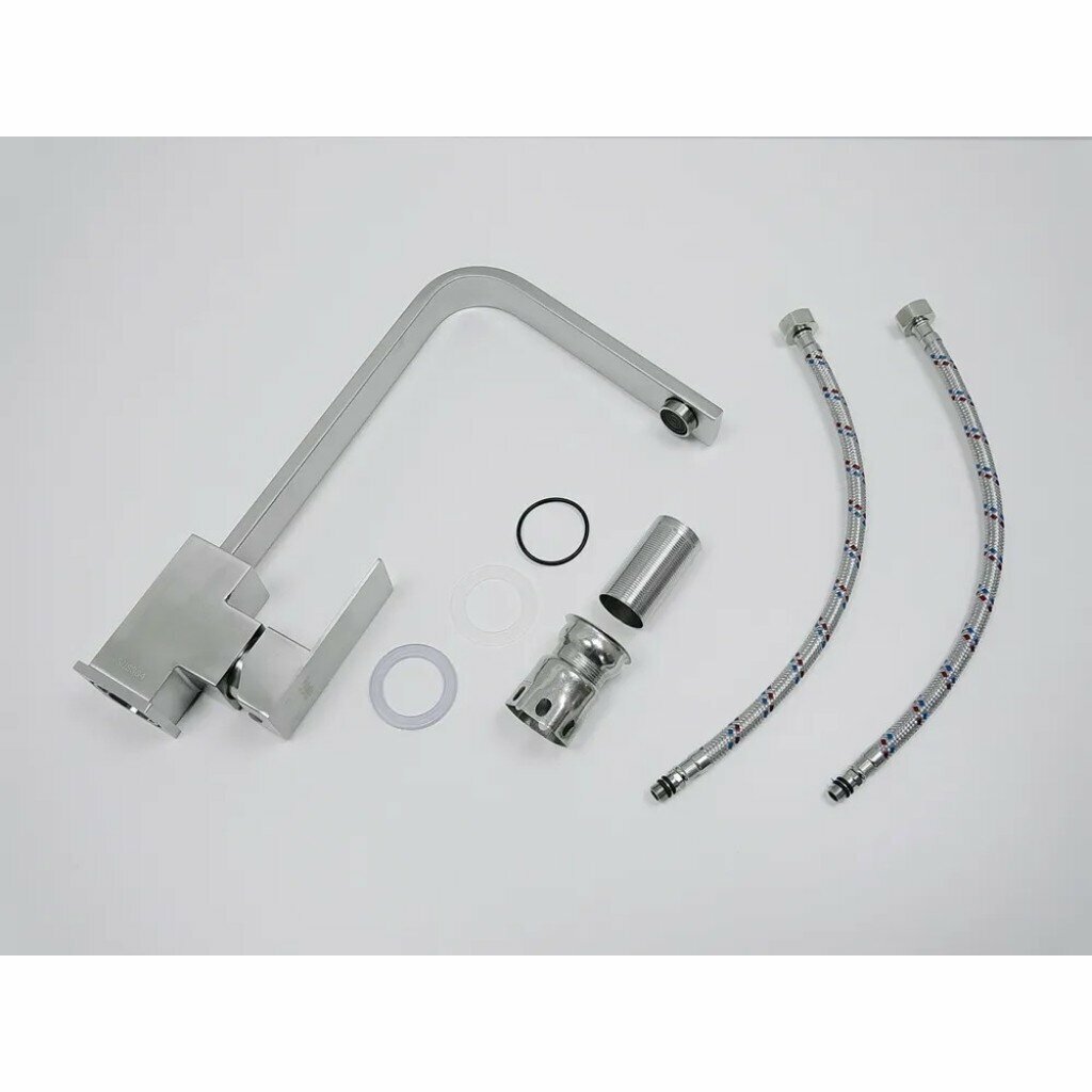 Смеситель на кухню Potato P40304S с высоким изливом, картридж 35 мм, нержавейка, крепление гайка интересное: