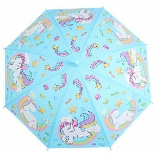 Зонт детский "Единорог" BRADEX, для девочки, мальчика, трость, полуавтомат, голубой