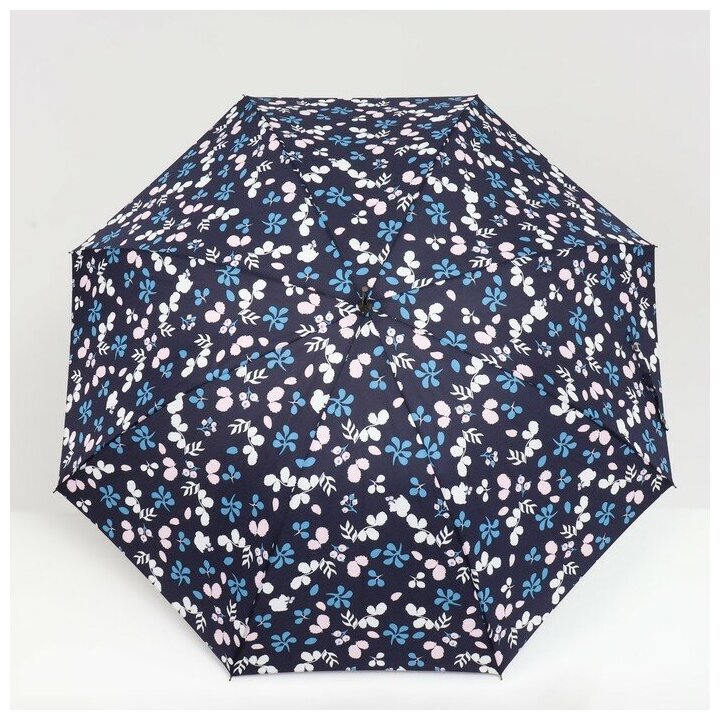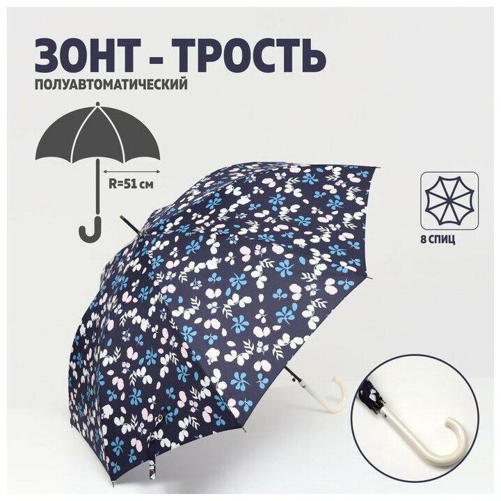 Зонт - трость полуавтоматический «Цветочки», 8 спиц, R = 51 см, цвет тёмно-синий интересное: