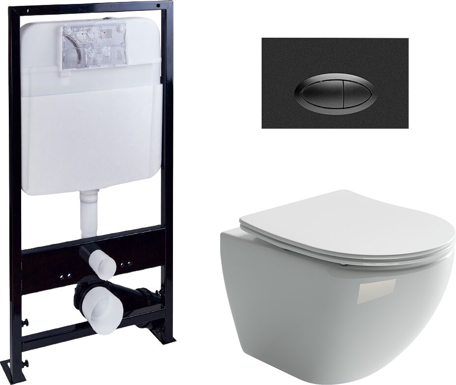 Купить Комплект Унитаз подвесной Ceramica Nova Metropol CN4002 безободковый + Система инсталляции EWRIKA ProLT 0026-2020 + Кнопка смыва EWRIKA 0054 черная матовая