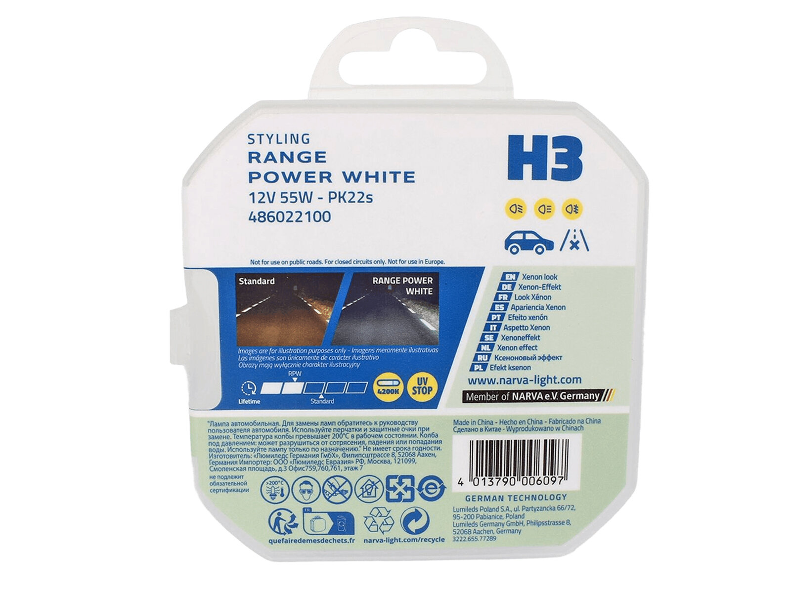 Галогенные лампы и наборы головного света для H3 12V-130W (PK22s) Rally - тип NARVA 48381