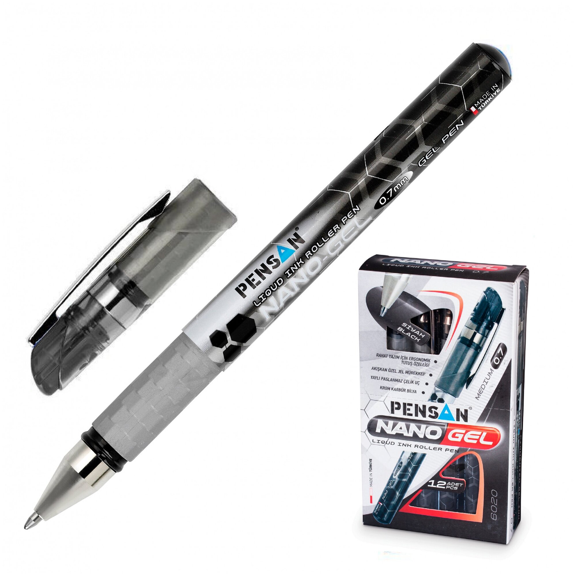 Купить Ручка гелевая Pensan Nano Gel (6020/12BLACK) серебристый диаметр 0.7мм черные чернила игловидный пишущий наконечник линия 0.5мм резиновая манжета