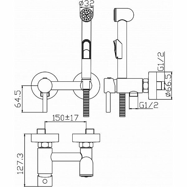 Смеситель ARGO LEDA 25-07/2L настенный с гигиеническим душем, хром