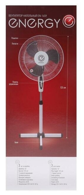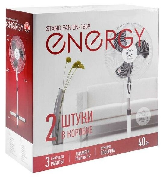 Вентилятор напольный Energy EN-1659 диам.40см,40 Вт,3 скорости, белый