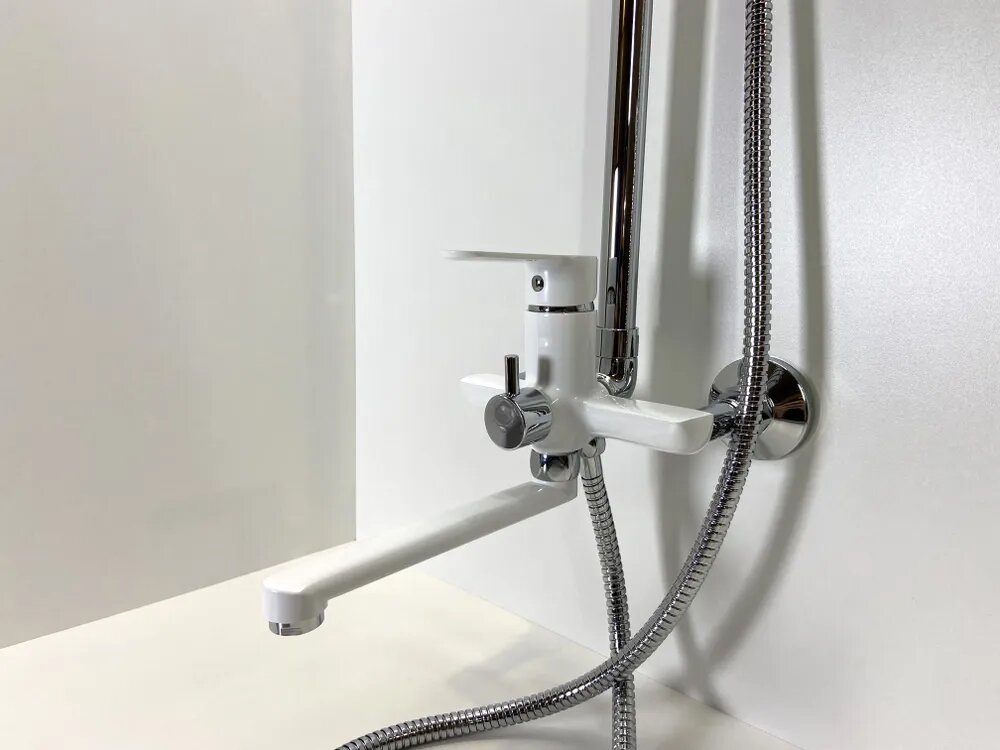 Душевая стойка c верхним тропическим душем и ручной лейкой, белая интересное: