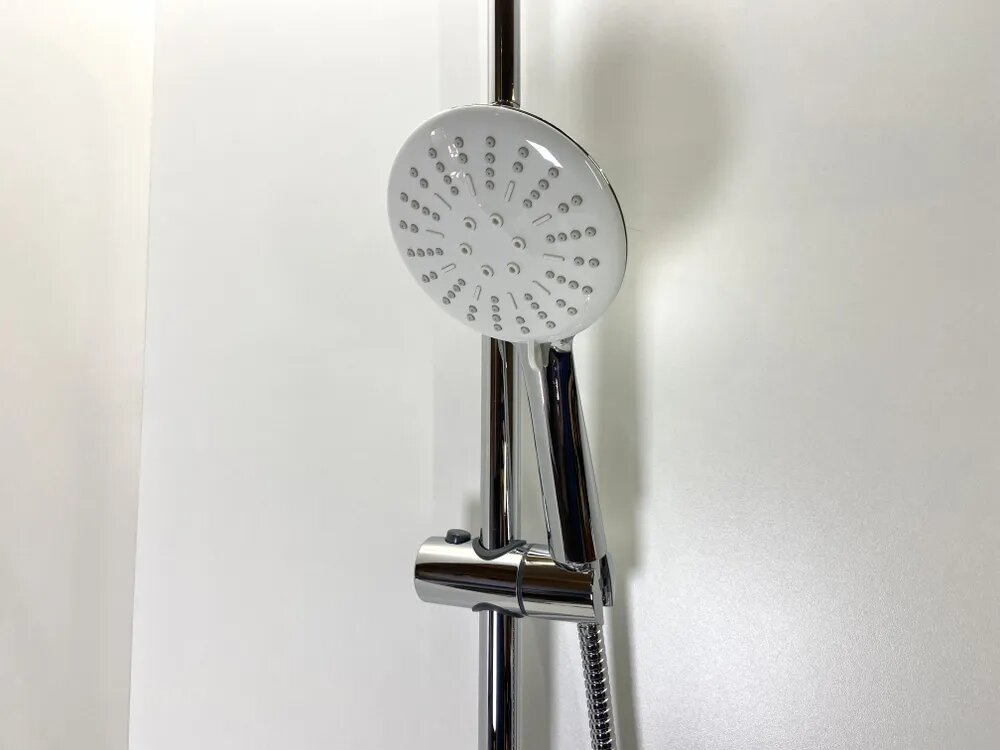 | Комплектация | Смеситель / душевая штанга / держатель для лейки / лейка / шланг / верхний душ / отражатели / эксцентрики / гибкая подводка |