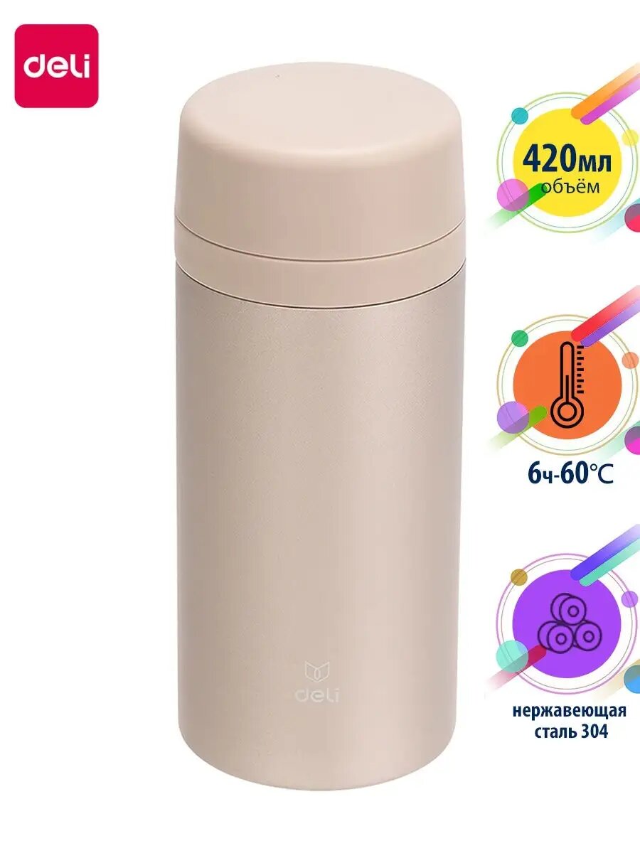 Термос Deli 17657champ 0.42л. шампань интересное:
