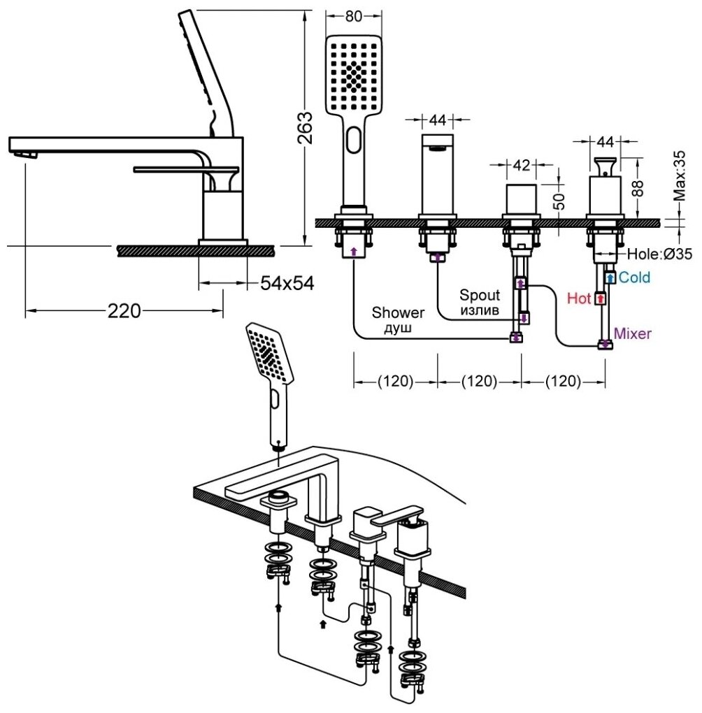 | Монтаж | на борт ванны |