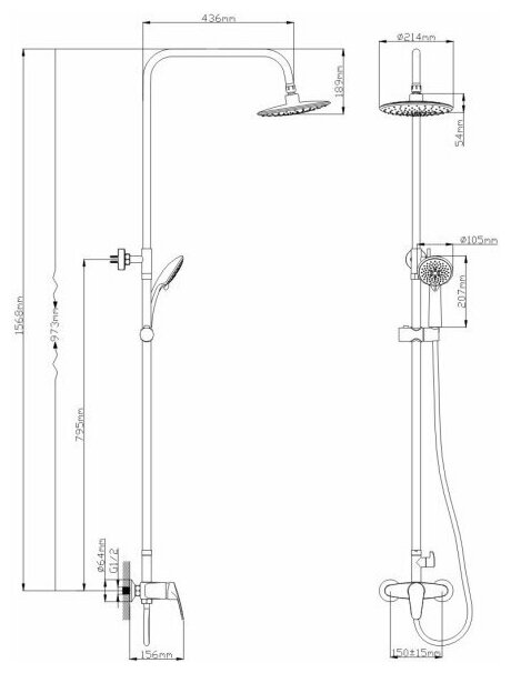 | Комплектация | тропический душ; душевая стойка; лейка; душевой шланг; смеситель / монтажный комплект |