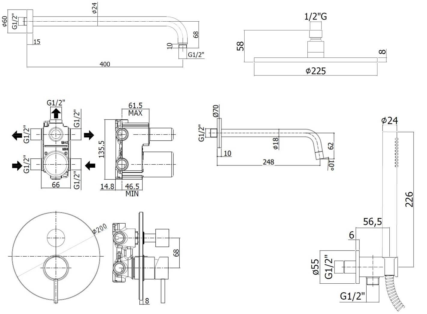 Комплект KITLIG019NO046 для ванны с изливом 245мм, смеситель LIG019NO на 3 выхода, душ 225мм, LIGHT, черный матовый Paffoni интересное: