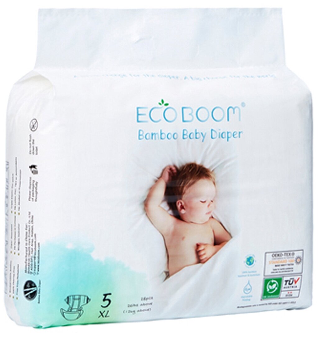 MKEB20015-XL Подгузники бамбуковые детские ECO BOOM. размер XL больше 12 кг. 28 штуки в упаковке