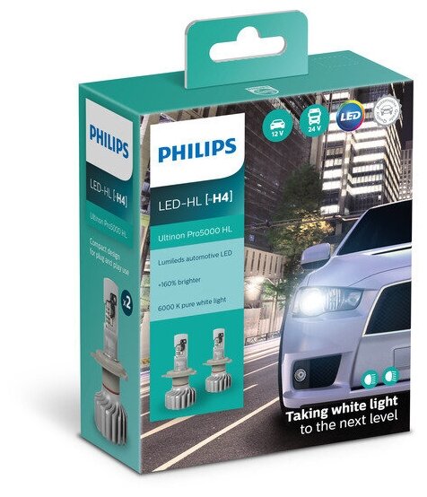 Лампа H4 Ultinon Pro5000 Led Hl 5800K Philips арт. 11342U50CWX2