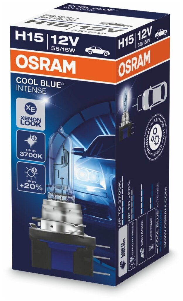 OSRAM 64176CBI Лампа 12V H15 15/55W PGJ23t-1 OSRAM COOL BLUE INTENSE 1 шт. картон 64176CBI