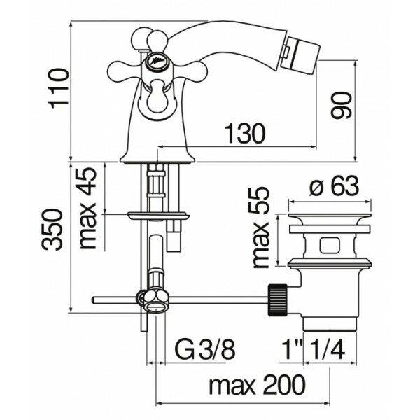 Смеситель Nobili Grazia GRC5119/6BR для биде с донным клапаном