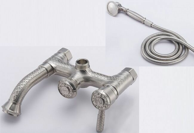 Смеситель Zorg серия Antic A 200W-SL для ванны с душем, латунь серебро, шланг с лейкой, с орнаментом, одноручковый, ретро
