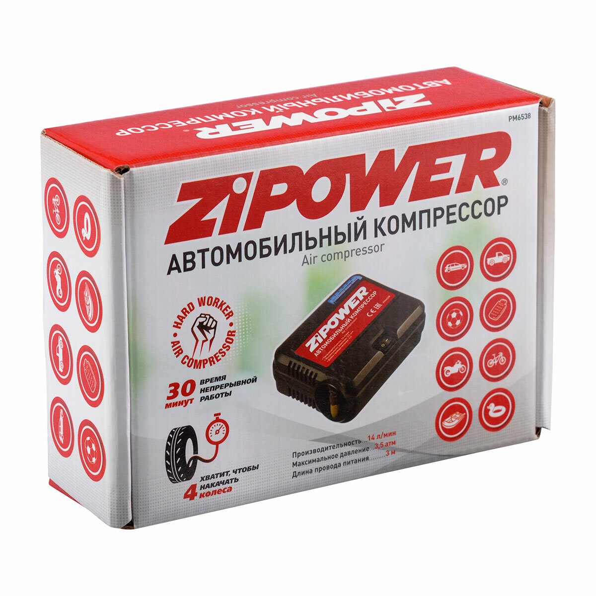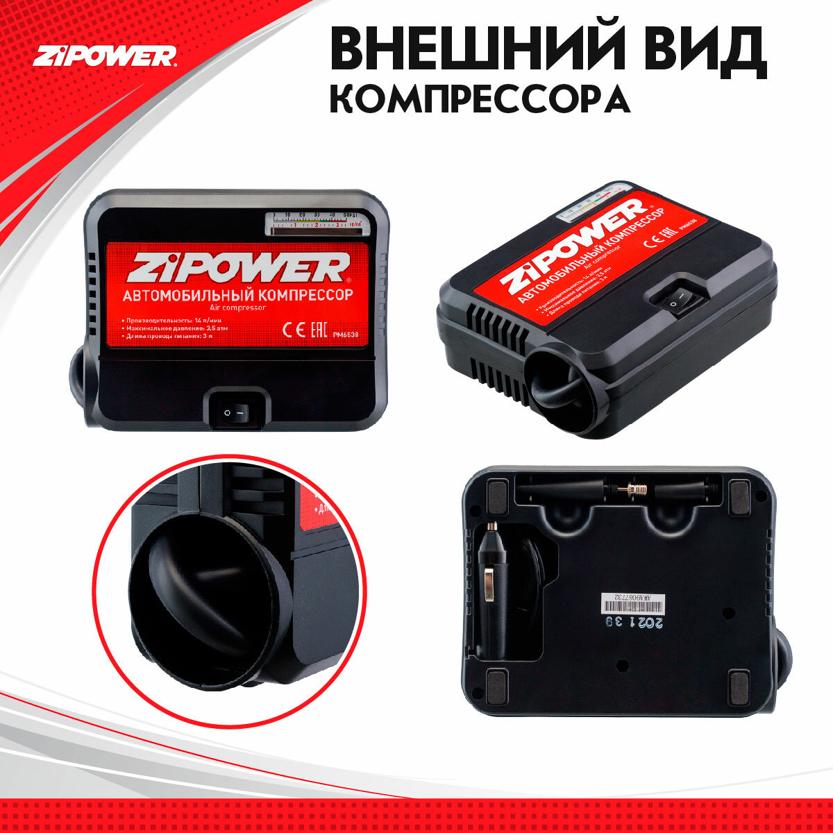 Портативный автомобильный компрессор 14 л/мин PM6538 интересное: