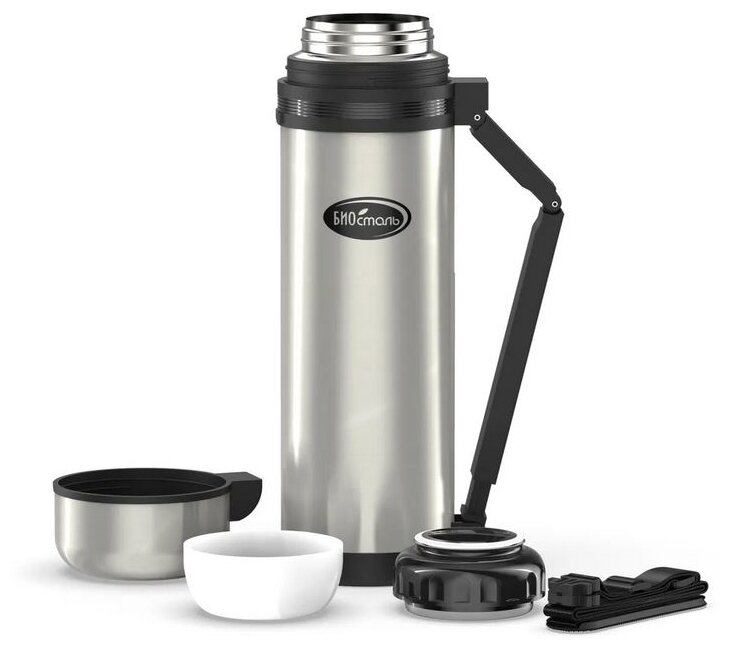 Термос Biostal NG-1000-1 1л,универс.,нерж,ручка,рем. для переноски,крышка-чашка и доп.пласт.чашка