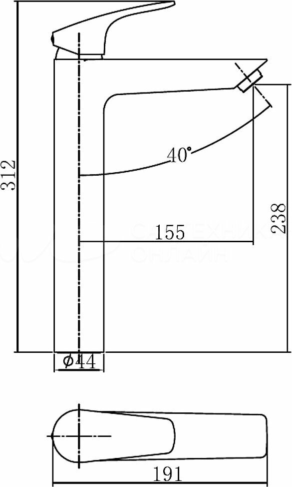 | Длина излива | 155 мм |