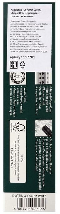 Купить Карандаш ч/г Faber-Castell "Grip 2001" В, трехгранный, с ластиком, заточен.