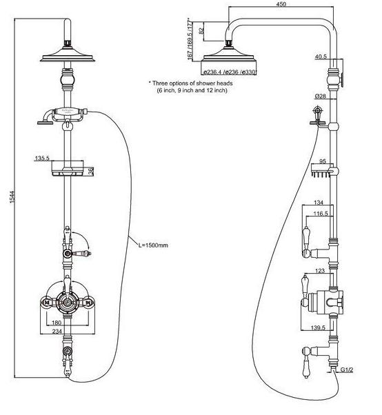 | Дополнительная информация | высота стойки для душа: 1544 мм; диаметр верхнего душа: 330 мм |