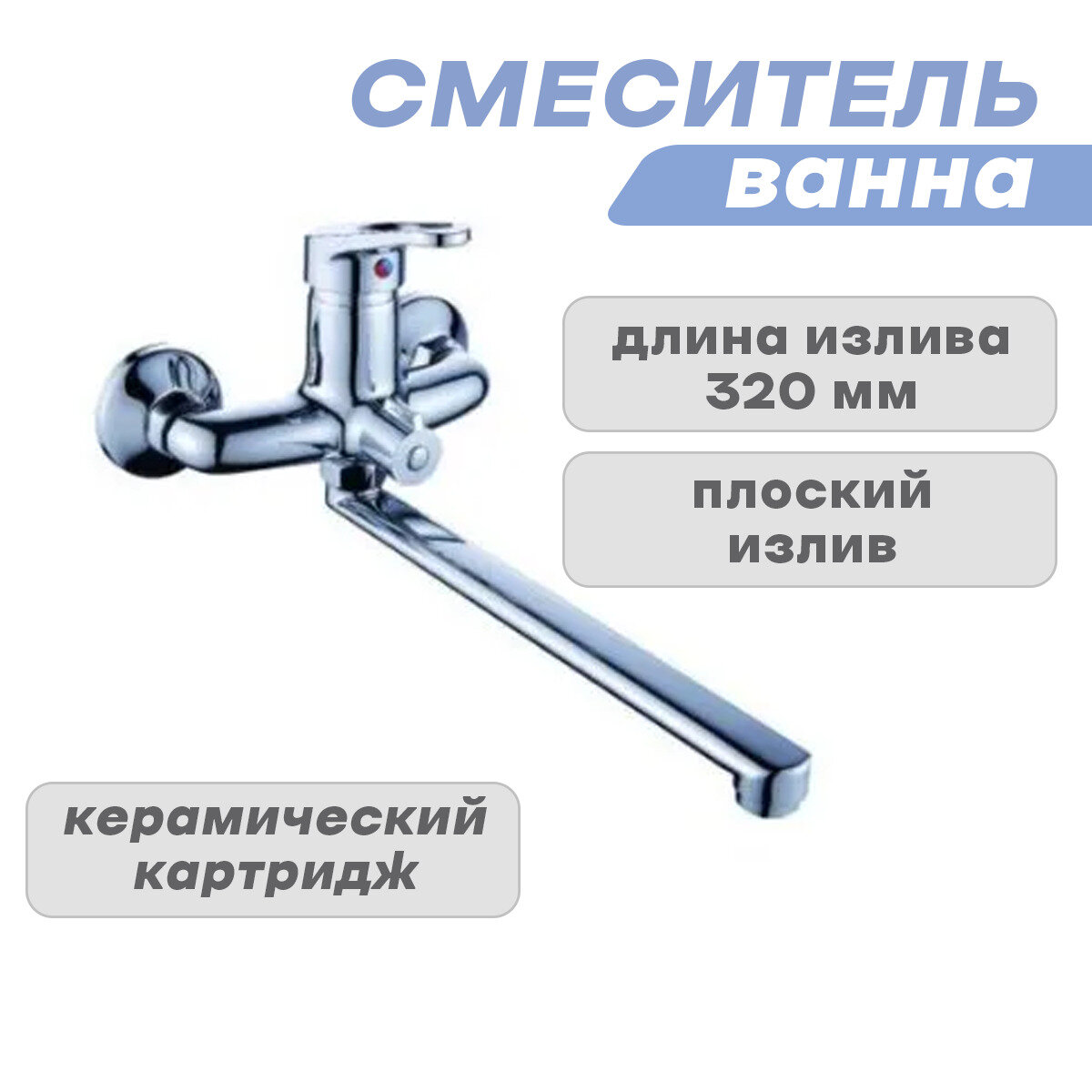 Купить Смеситель на ванну Эверест B22-028 с длинным плоским поворотным изливом, картридж 35 мм, хром