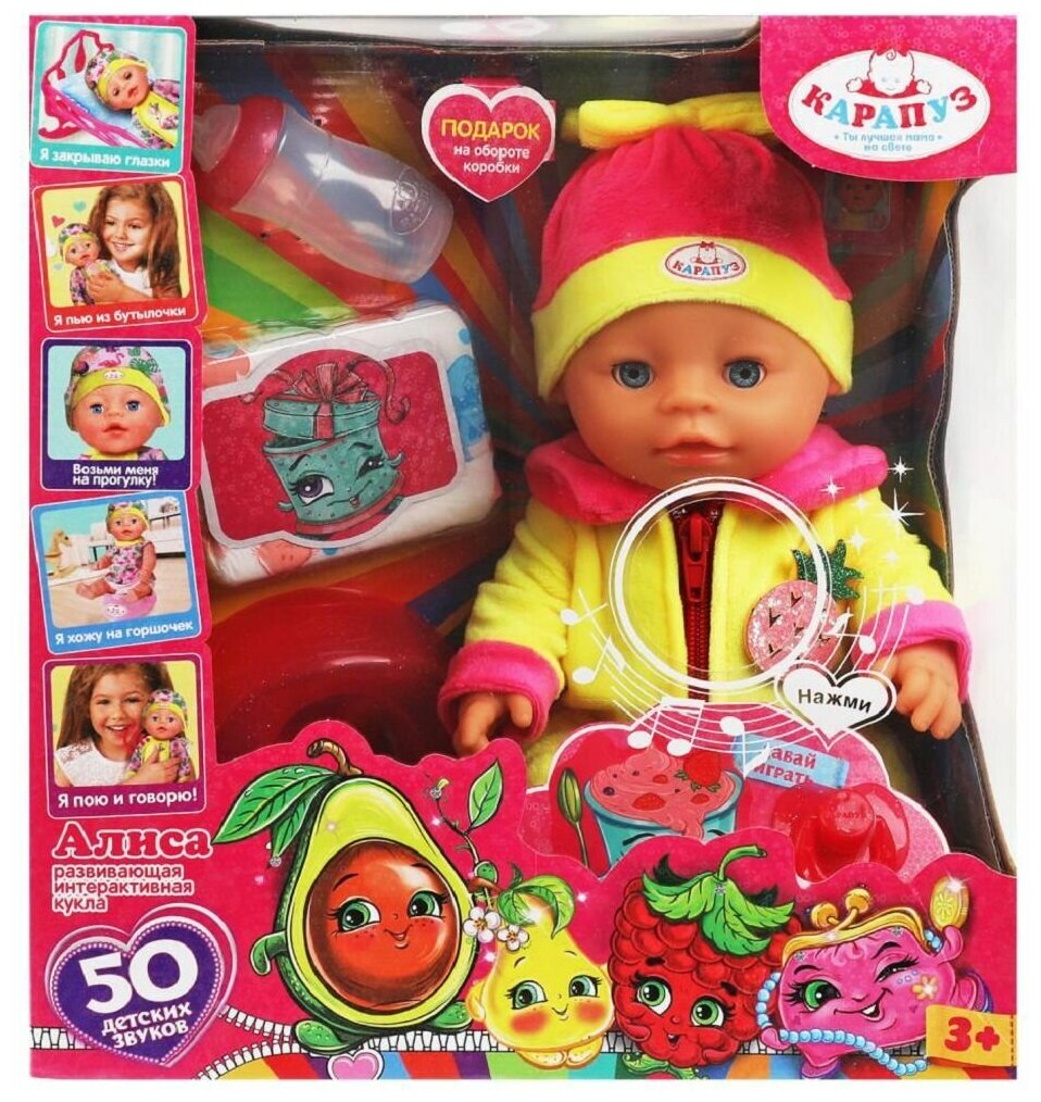 Пупс озвуч Алиса 30см в боди,пьет,писает,закр глаза, 50 фраз интересное: