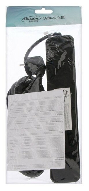 Luazon Lighting Удлинитель Luazon Lighting, 2 евро+2 унив.роз., 3 м,2200Вт, 2х0.75 мм2, 3хUSB, с выключателем, чёрный