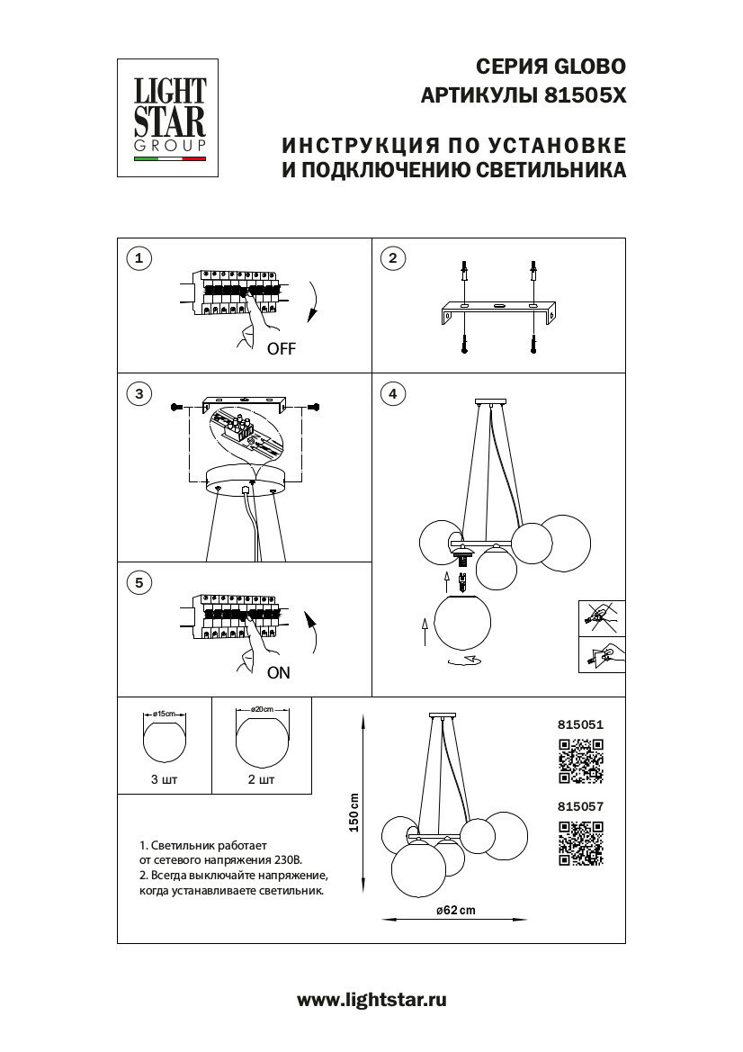Ниже Вы можете прочитать отзывы на Светильник подвесной Lightstar Globo 815057, ознакомится с подробными характеристиками, посмотреть интересные обзоры и фотографии на Светильник подвесной Lightstar Globo 815057.