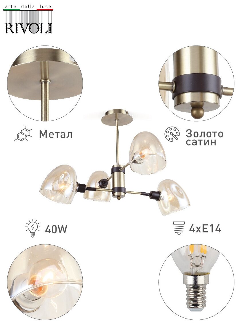 Rivoli 4034-304 Rivoli Люстра Camila P4 золото сатин E14*4 40W (36) интересное: