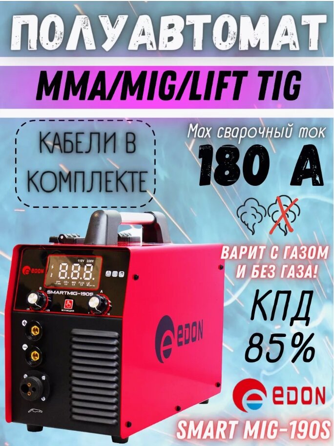 Ниже Вы можете прочитать отзывы на Сварочный полуавтомат инверторный Edon Smart MIG-190S, ознакомится с подробными характеристиками, посмотреть интересные обзоры и фотографии на Сварочный полуавтомат инверторный Edon Smart MIG-190S.