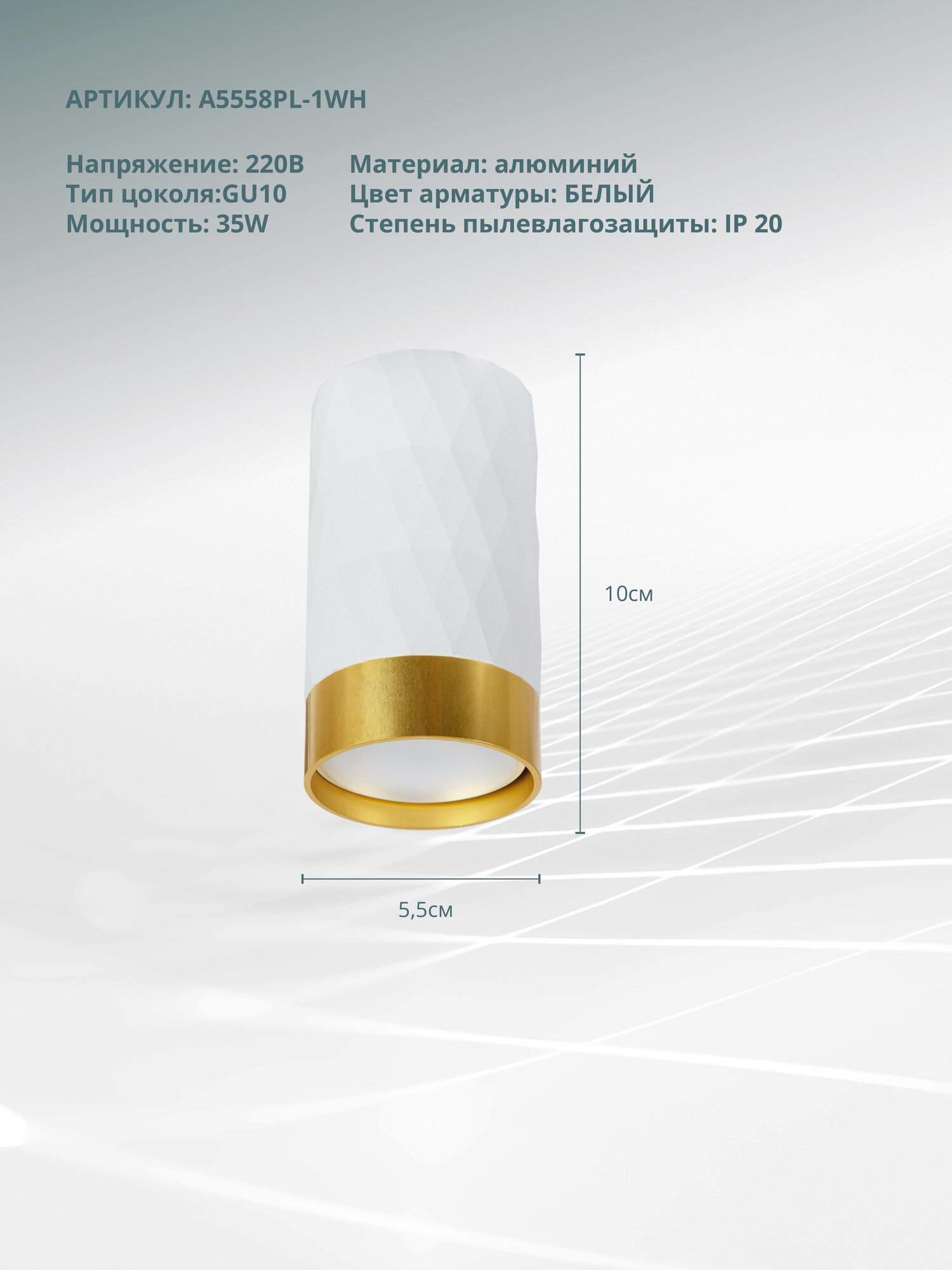 Накладной светильник Arte Lamp Fang A5552PL-1WH, GX53, кол-во ламп:1шт., Белый