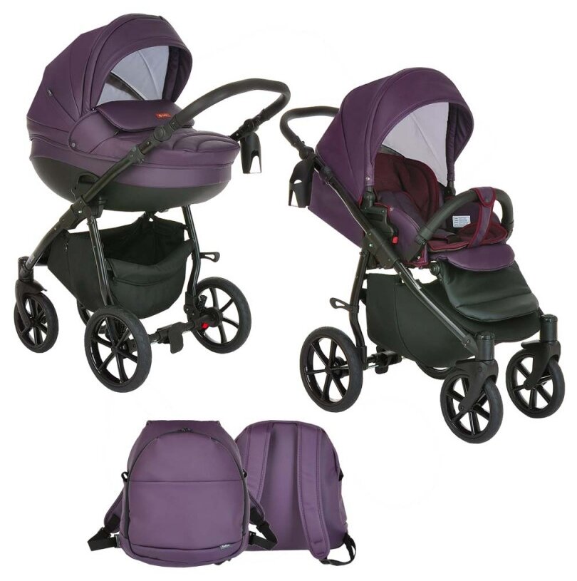 Коляска 2 в 1 Tutis Nanni Кожа Тем.фиолетовый /Черная рама/Гель.колеса интересное: