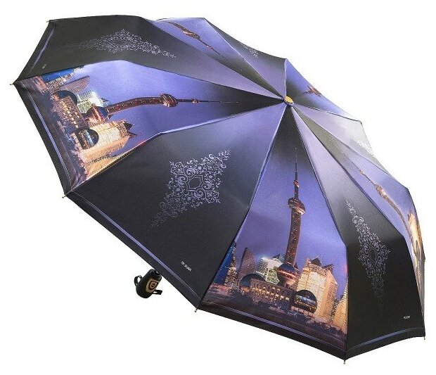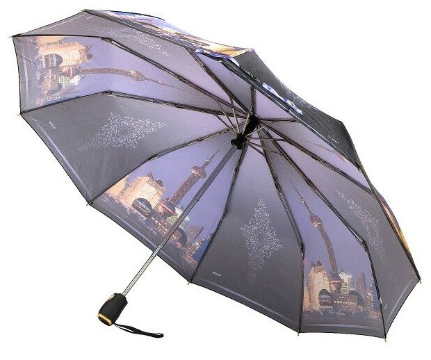 Зонт "Три Слона" женский №310-5, купол D=103 см, 10 спиц, суперавтомат бежево-черный