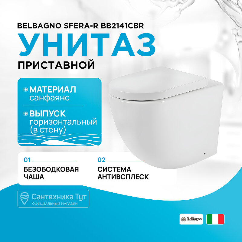 Приставной безободковый унитаз BelBagno Sfera-R BB2141CBR интересное: