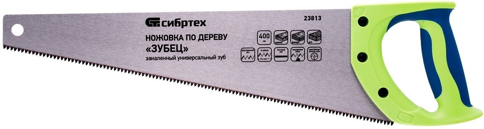 Ножовка по дереву Сибртех Зубец 400 мм, 7-8 TPI, зуб 3D, каленый зуб, 2-х компонентная рукоятка 23813