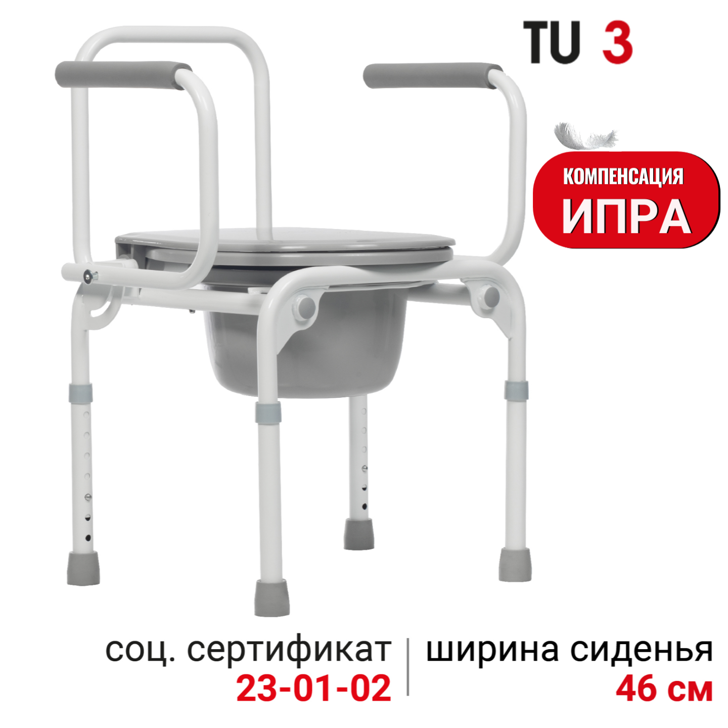 Санитарный стул для пожилых и инвалидов с откидными подлокотниками регулируемый по высоте Ortonica TU 3 до 130 кг Код ФСС 23-01-02