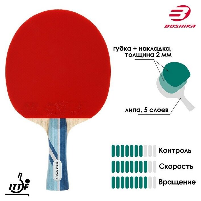 BOSHIKA Ракетка для настольного тенниса BOSHIKA Expert 3*, для тренировок, накладка DOUBLE FISH 830 2,0 мм, коническая ручка