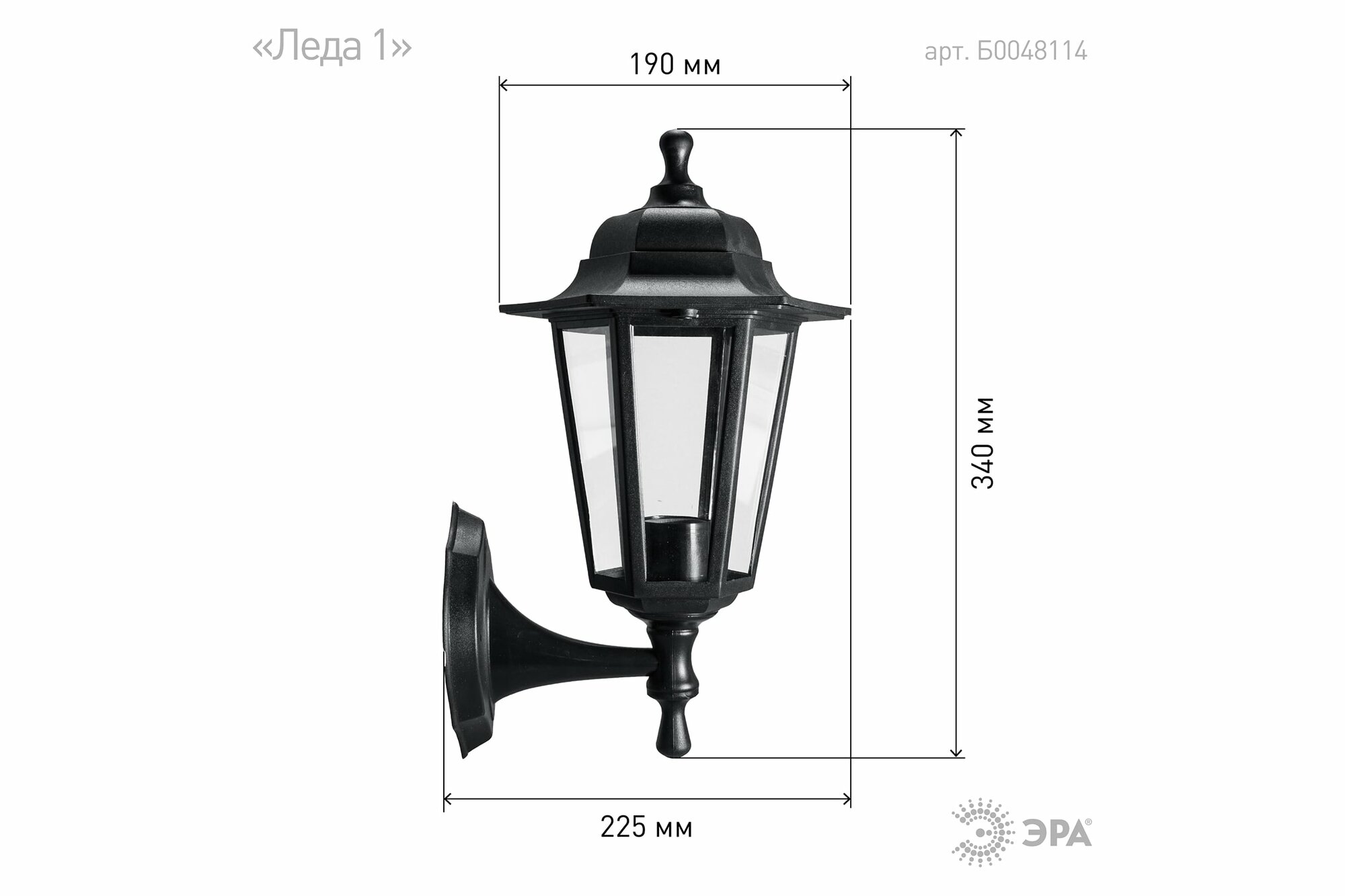 Светильник садово-парковый ЭРА НБУ 06-60-001 Леда1 настенный шестигранный черный Е27 арт. Б0048114 (1 шт.)