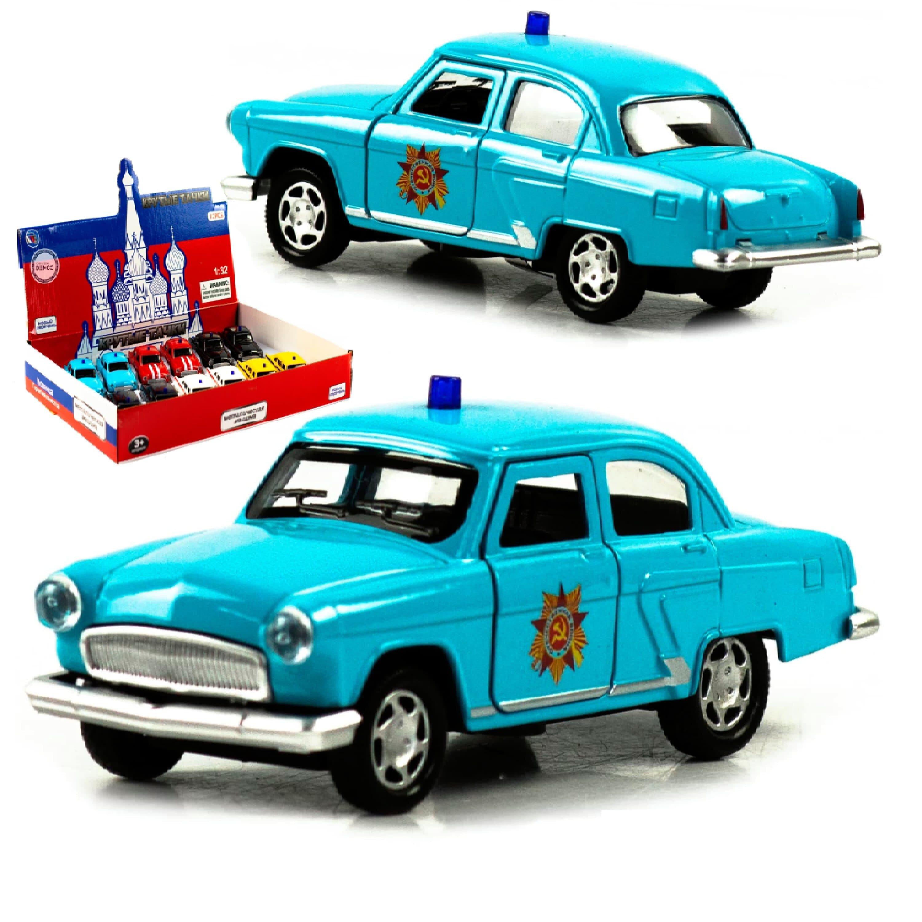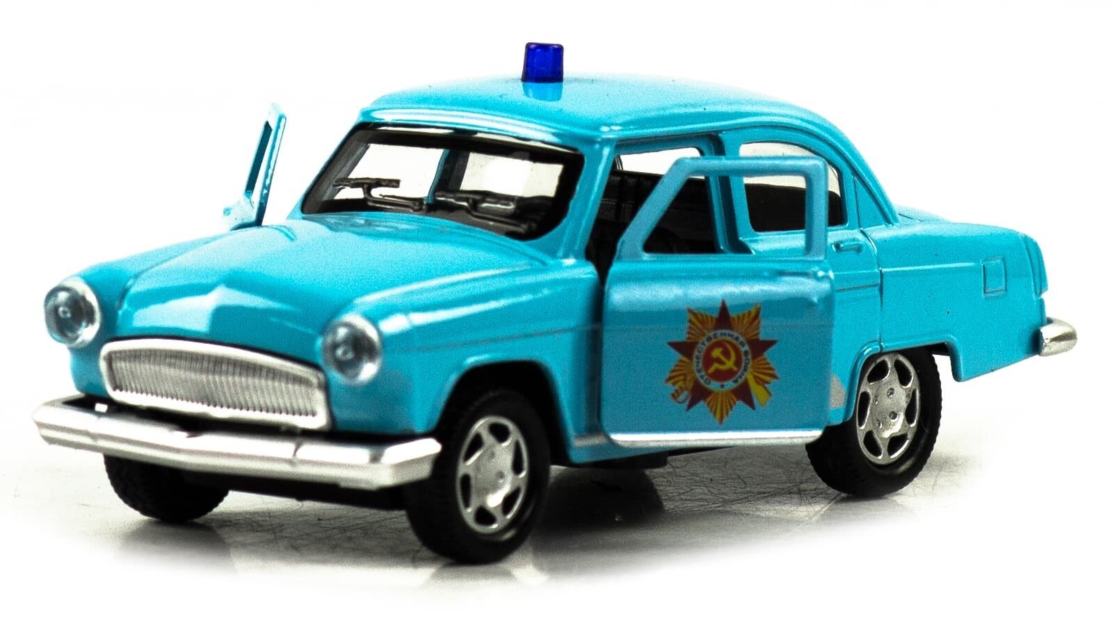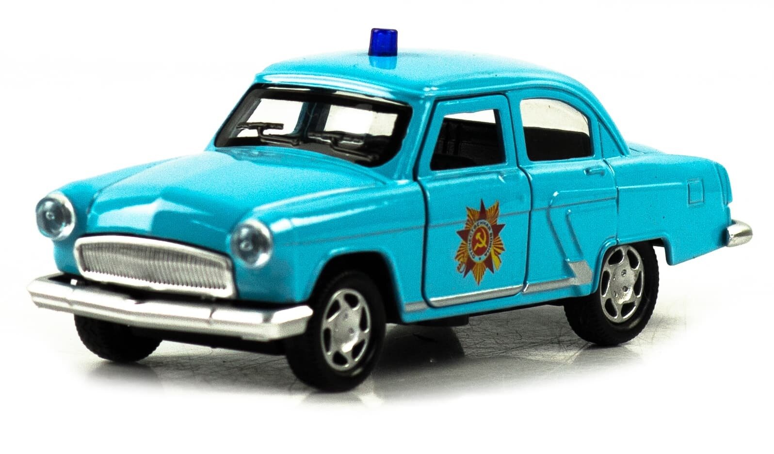Купить Машинка металлическая 1:32 "ГАЗ 21 Волга / 13 Чайка : Служебная" 1823P-1824P-12D, инерционная, свет, звук / Голубой