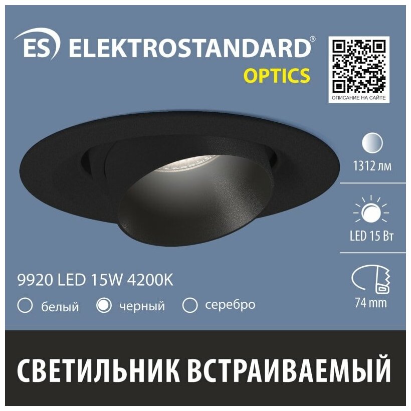 Встраиваемый светодиодный светильник Elektrostandard Zoom 9920 LED, 15 Вт, 4200 K, цвет черный
