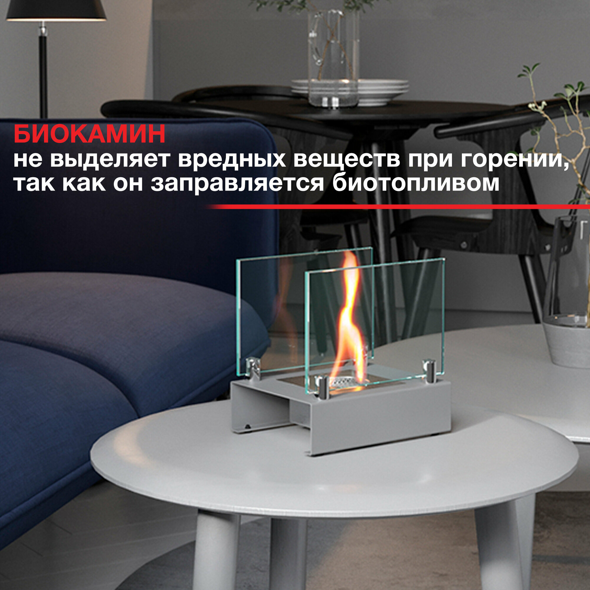 Настольный биокамин SteelHeat ALBA серый интересное: