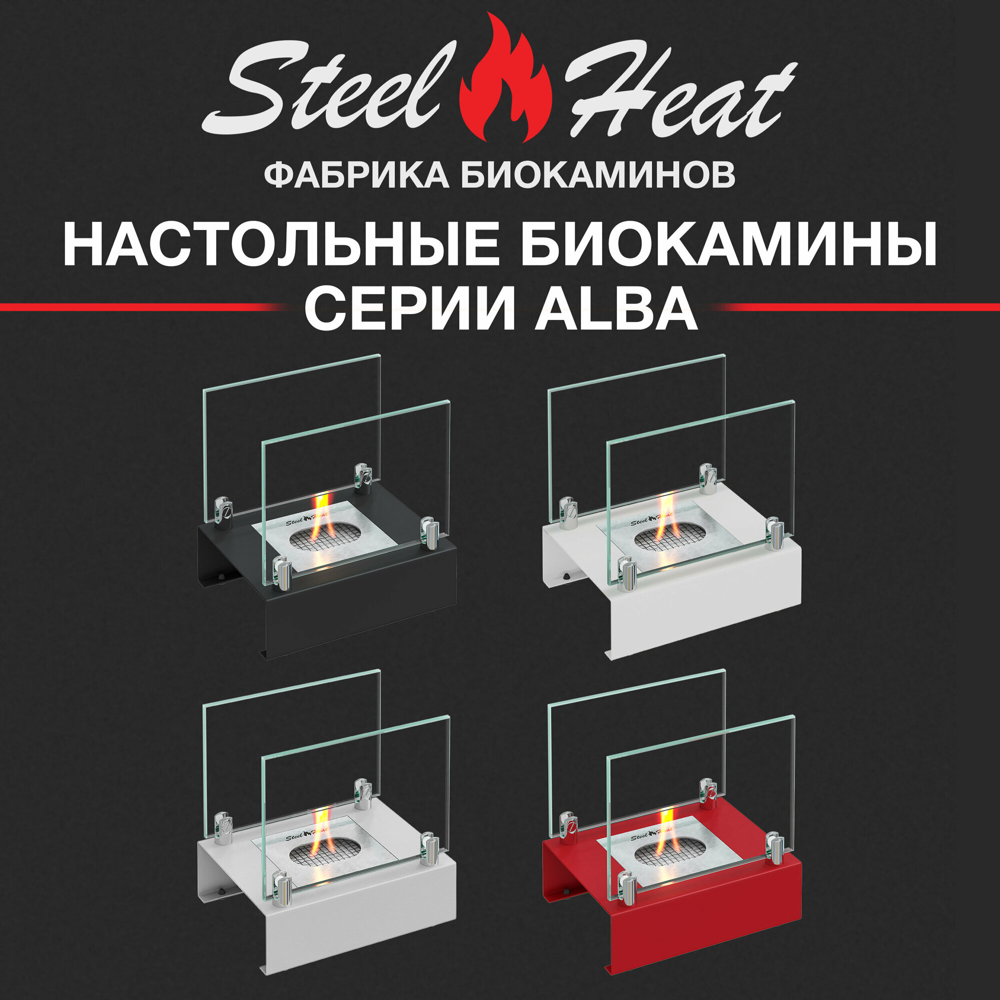 Настольный биокамин SteelHeat ALBA черный