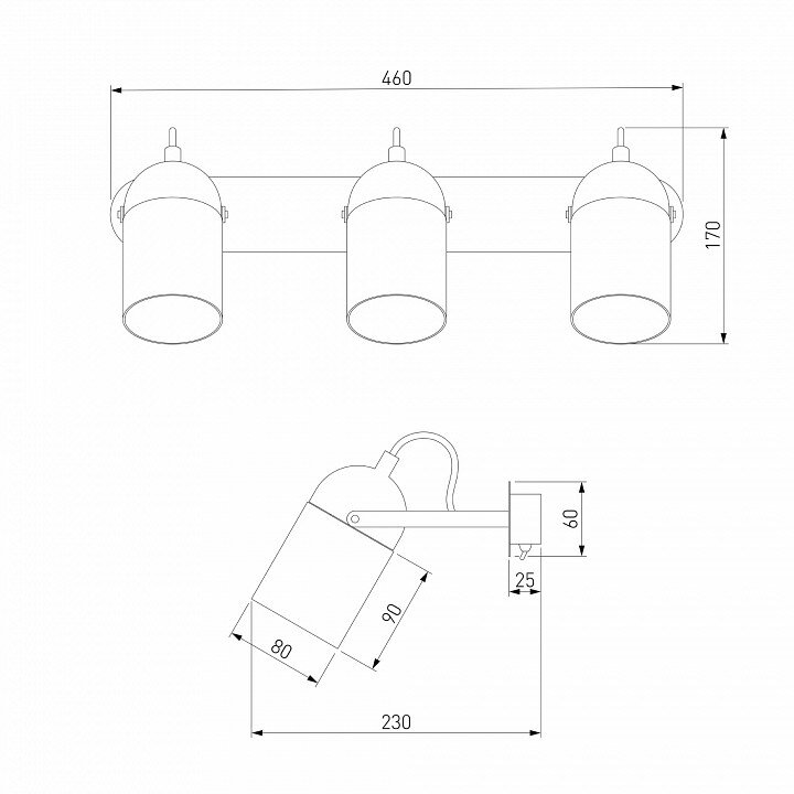 Спот настенный накладной золото/черный Eurosvet Mars E27 120 Вт IP20 под 3 лампы (a045910)