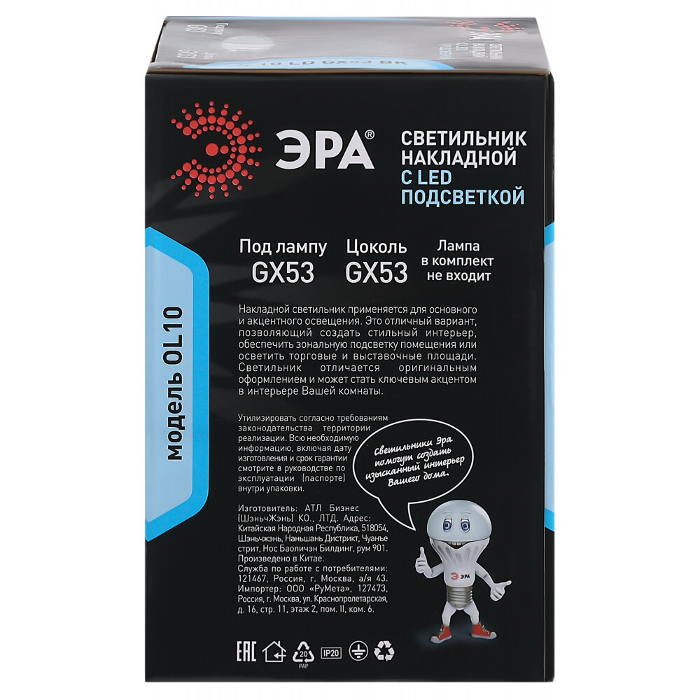 Светильник накладной ЭРА OL10 LD GX53 BK черный подсветка 1W 1/50/900