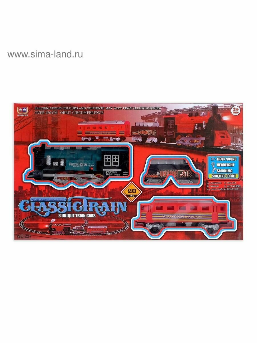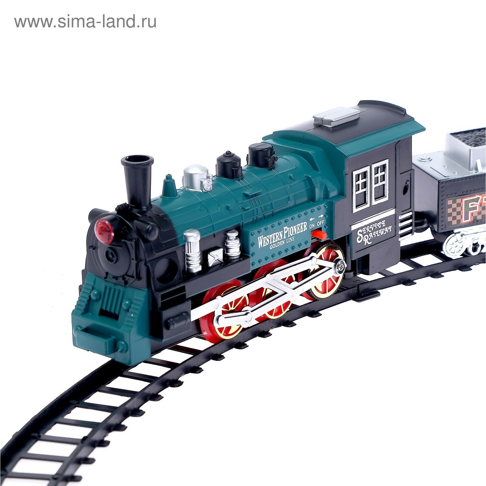 Купить Железная дорога Классический поезд, свет и звук, с дымом, работает от батареек 2612227 .